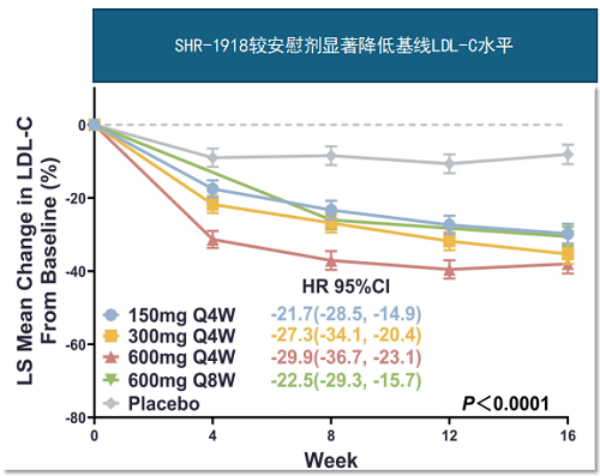 所有患者均接受研究医师确定的标准降脂治疗。完成16周双盲治疗后,患者进入为期36-40周的SHR-1918开放延伸治疗期,并进行安全性随访。