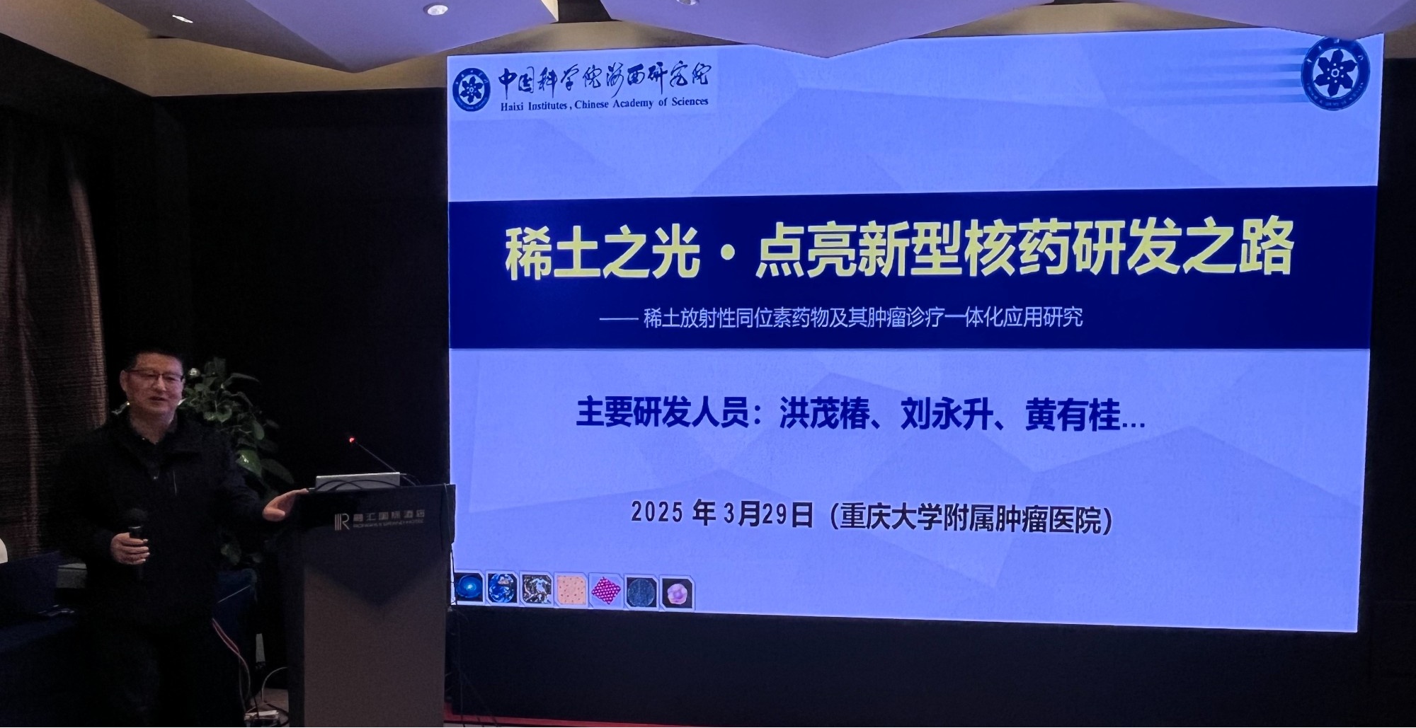 学术报告环节,中科院福建物构所刘永升教授以《稀土之光点亮新型核药研发之路》为题,提出稀土靶向α-同位素药物(如225Ac)的诊疗一体化策略,通过"稀土-同位素-配体"三位协同设计,构建兼具定位与打击功能的纳米团簇,并强调需突破原料质控等瓶颈,推动学科融合创新。