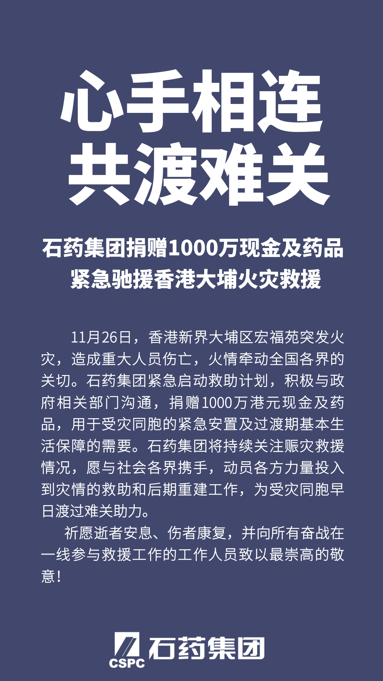会员之窗 | 石药集团捐赠1000万现金及药品 紧急驰援香港大埔火灾救援