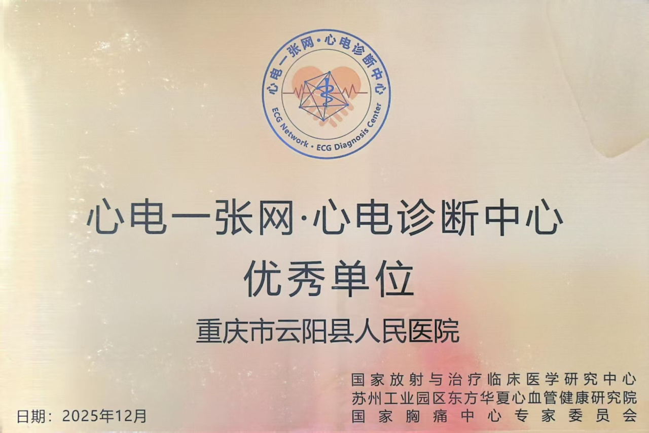 2025年,重庆市云阳县人民医院胸痛中心取得显著成果,近日连续获得两项国家级权威认证
