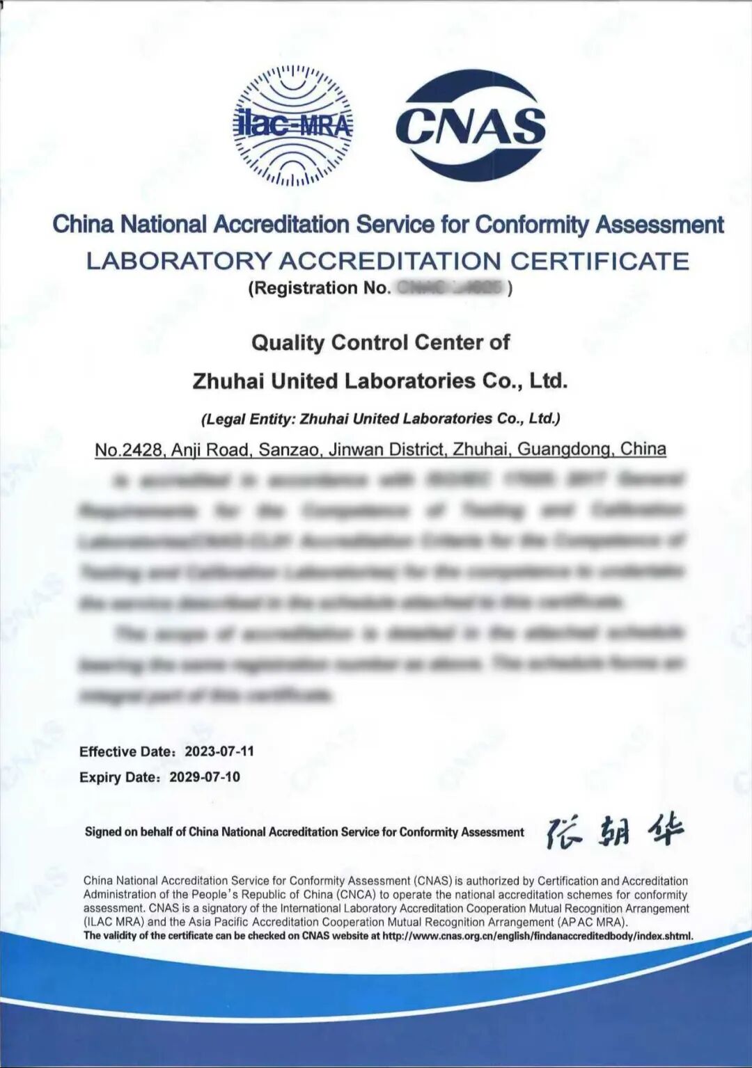 中国合格评定国家认可委员会(CNAS)是经国家市场监督管理总局依法确定,专门从事检验机构、实验室等合格评定机构认可评价活动的国家权威认可机构,为国际认可论坛(IAF)、国际实验室认可合作组织(ILAC)、亚太实验室认可合作组织(APLAC)和太平洋认可合作组织(PAC)的正式成员,CNAS所授予的认可资质在国际上具有广泛公信力,是衡量实验室技术能力和管理水平的重要标尺。