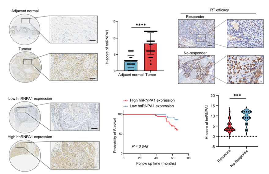 图1.hnRNPA1在口腔鳞状细胞癌中高表达与放疗疗效不佳相关