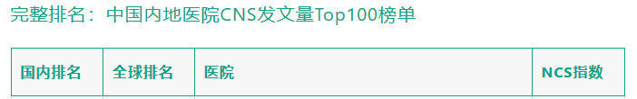 近日,国际顶尖学术期刊《Cell》、《Nature》、《Science》(简称CNS)编辑部基于2025年度全球生物医学领域最权威的文献计量数据,正式发布了“NCS全球医院指数2025”(NCS Hospital Index 2025)。在中国内地医院Top100榜单中,重庆大学附属肿瘤医院排名第73位;重庆市共有3家医院上榜,我院排名第2;全国肿瘤专科医院共有26家单位上榜,我院排名第9,同时也是西南地区唯一上榜的肿瘤专科医院。