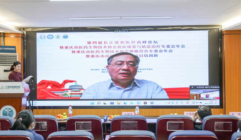 又是一年金秋好时节,2022年11月11日-12日,由重庆市医药生物技术协会主办,重庆市医药生物技术协会癌症康复与姑息治疗专委会、肿瘤营养专委会、重庆大学附属肿瘤医院老年肿瘤科、营养科承办的“第四届长江缓和医疗高峰论坛暨重庆市医药生物技术协会癌症康复与姑息治疗专委会年会暨重庆市医药生物技术协会肿瘤营养专委会年会暨重庆市市级继续教育项目培训班”成功举办。