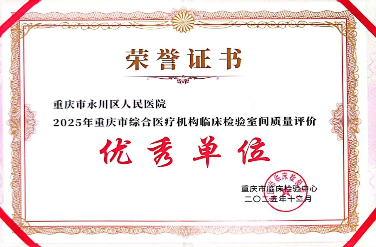 会员之窗 | 喜报!重庆市永川区人民医院荣获“2025年重庆市综合医疗机构临床检验室间质评价优秀单位”称号